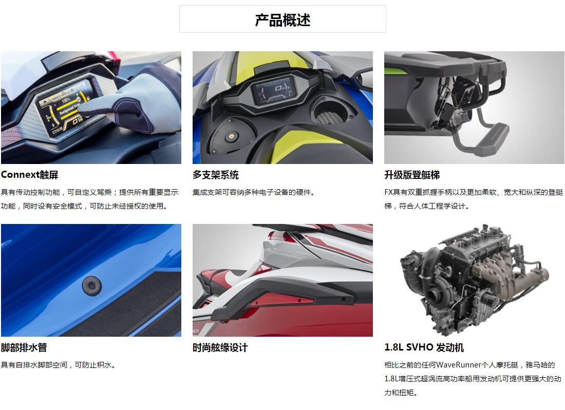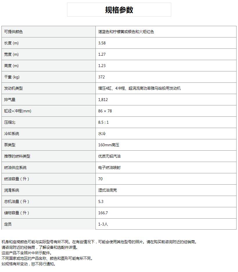 奢華造型,強(qiáng)悍性能;寬敞型,一流的性能,配置雅馬哈增壓超渦流船用發(fā)動(dòng)機(jī)。