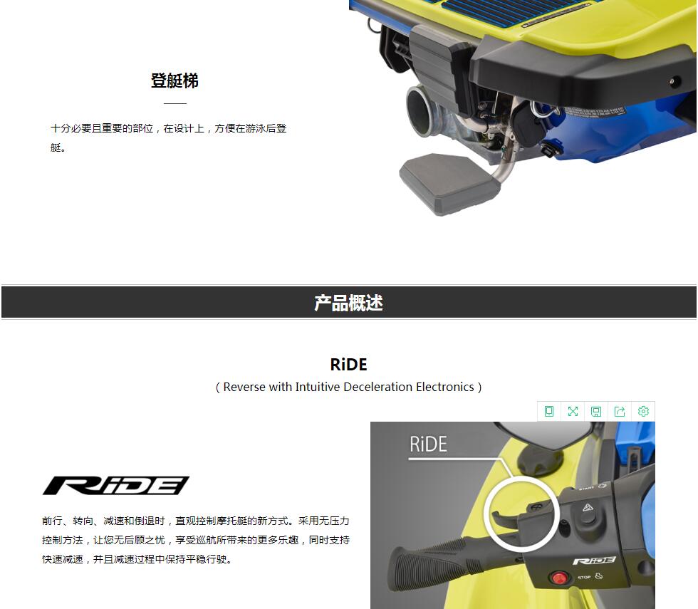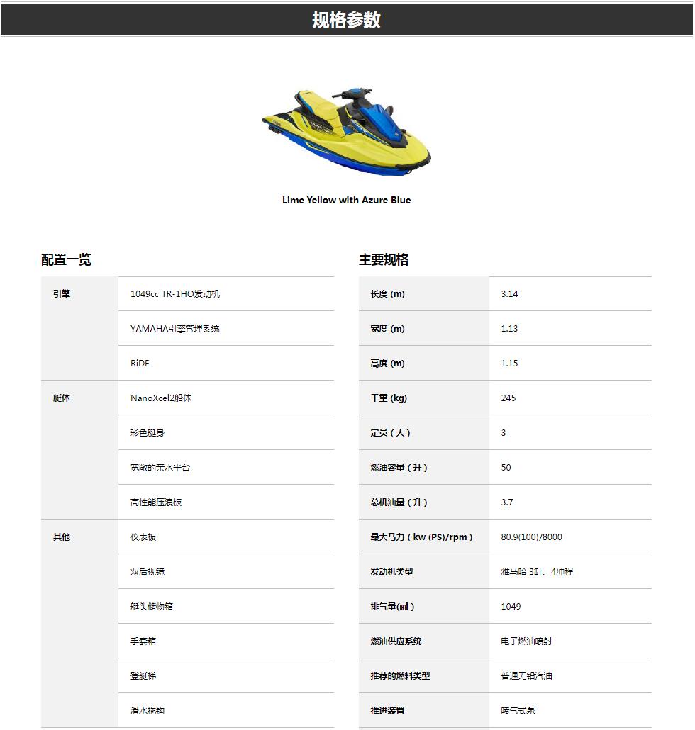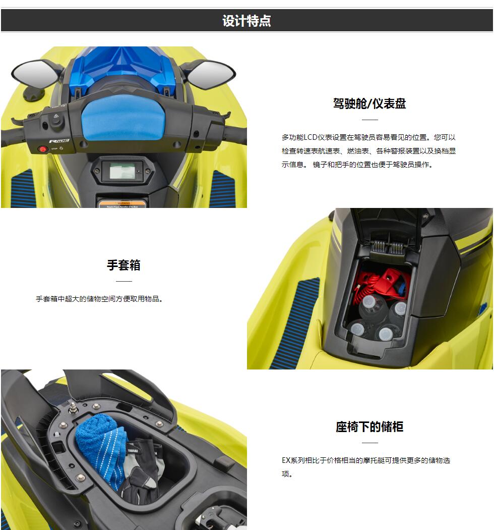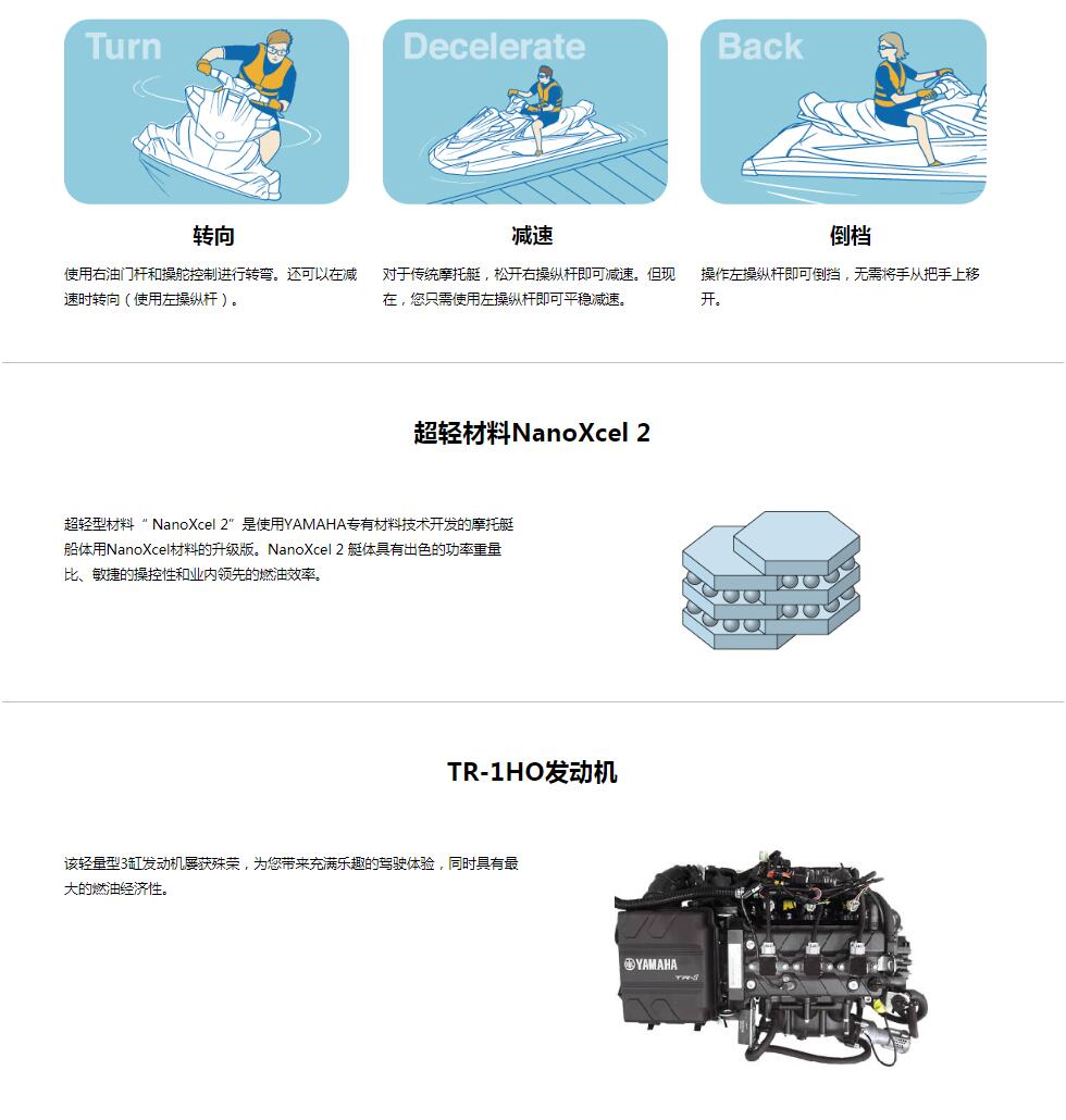 采用TR-1HO引擎和NanoXcel 2船體,可實現(xiàn)較高的運行性能。搭載易于使用的三人座椅和電動倒檔及減速系統(tǒng)“RiDE”。 以及貼合人體的外觀設(shè)計,即使初學(xué)者也可以輕松駕馭的運動款EXR。海上運動所需的出色性能和活力外觀的新款!